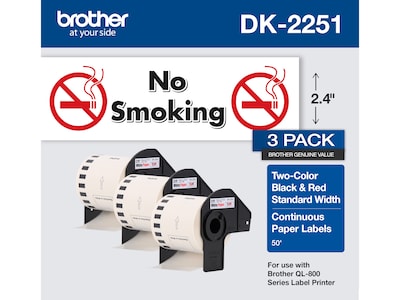 Brother DK-2251 Standard Width Continuous Paper Labels, 2-4/10" x 50', Black/Red on White, 3 Rolls/Box (DK-22513PK)
