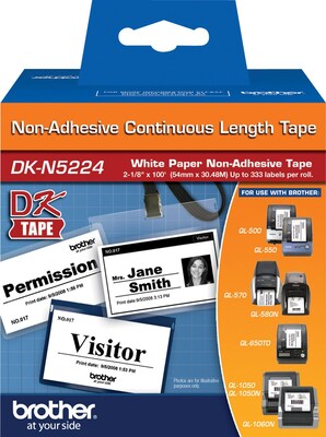 Brother DK-N5224 Non-Adhesive Wide Width Continuous Paper Labels, 2-1/10" x 100', Black on White (DK-N5224)