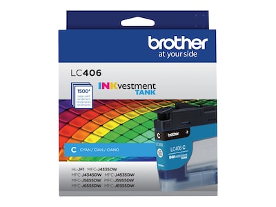 - Brother Genuine LC406C Standard Yield Cyan INKvestment Tank Ink Cartridge.