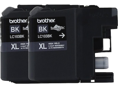 Cover printing needs in the classroom, home or small office with this 2-pack of Brother LC103 high-yield black ink cartridges.