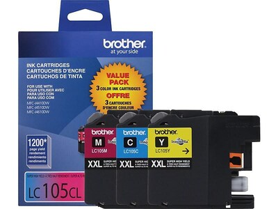 Experience high performance each time you print with these super-high-yield tricolor ink cartridges. With three cartridges in each pack, you can replace only the color you need, and the ink resists smearing and fading to ensure prints stay clean, neat and vibrant. These Brother ink cartridges feature a yield of up to 1,200 printed pages each, so they're a great choice for a home office or small business.