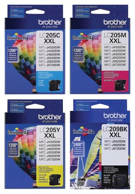Brother LC209 Black/LC205 Cyan, Magenta, Yellow Extra High Yield Ink, 4/Pack