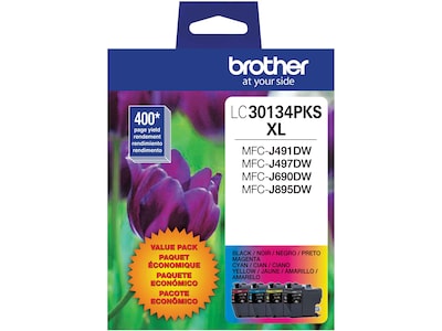 Brother LC30134PKS XL Black/Cyan/Magenta/Yellow High Yield Ink Cartridges, 4/Pack