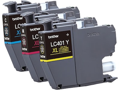 Brother LC401 Cyan/Magenta/Yellow High Yield Ink Cartridges, 3/Pack (LC401XL3PKS)