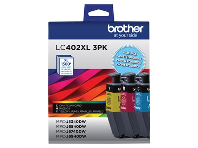 Brother LC402XL Assorted Colors High Yield Ink Cartridges, 3/Pack (LC402XL3PKS)