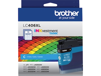 - Brother Genuine LC406XLC High Yield Cyan INKvestment Tank Ink Cartridge.