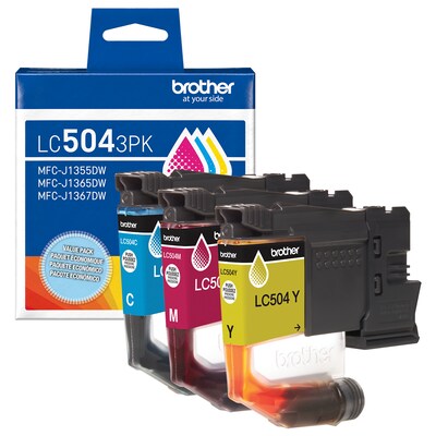 Reliable performance and outstanding print quality are hallmarks of Brother Genuine Ink. Formulated specifically to work with your Brother INKvestment printer, o produce premium prints. For everything you print, from coupons to tax documents, you can trust Brother Genuine Ink for consistent, premium performance with your Brother printer. The LC5043PK 3-Pack Standard Yield Ink includes one each of cyan, yellow, and magenta cartridges to produce vibrant, sharp prints for up to 500 pages in rich color.* Bundled for savings and your convenience, it's the economical way to replace the color ink cartridges in your printer. Print Confidently with Brother Genuine LC504 Ink in your INKvestment 1355, 1365, or 1367 printer, the only brand we recommend for your Brother printer.