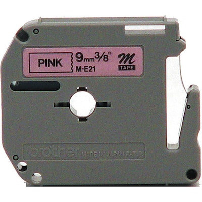 Brother M-E21 Label Maker Tape, 3/8"W, Black on Pink