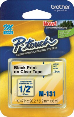 Brother P-touch M-131 Label Maker Tape, 1/2" x 26-2/10', Black on Clear