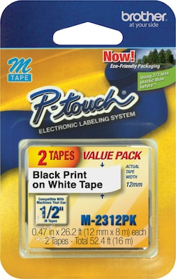 Brother P-touch M-231 Label Maker Tape, 1/2" x 26-2/10', Black on White, 2/Pack (M-2312PK)