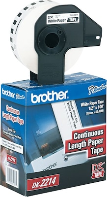 The DK2214 Durable Continuous Length Paper Tape offers a white background for black print. 1/2" wide DK tape is designed for use in Brother QL-1050, QL-1050N, QL-1060N, QL-500, QL-550, QL-570, QL-570VM, QL-580N, QL-650TD, QL-700, QL-710W, QL-720NW and QL-800 Series. Cutter in machines (sold separately) customizes label to the size you need.