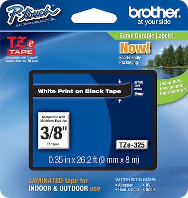 - USES DURABLE GENUINE BROTHER TZE LABEL TAPES. Water-resistant, fade-resistant, and chemical-resistant - for indoor and outdoor use. Available in a variety of finishes and colors.