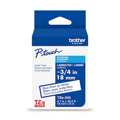 Brother P-touch Laminated Label Tape, ~3/4" x 26.2', Blue on White (TZe243)