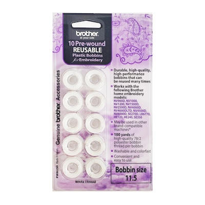 Brother Pre-Wound Embroidery Bobbins, White, 10/Pack (PWB250)