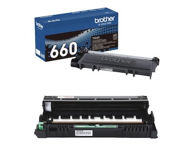 Create crisp, professional documents with the Brother genuine TN660 black high-yield toner cartridge and DR-630 drum unit. The bold black ink of this cartridge stands out beautifully on colored and white pages for easy-to-read script, delivering up to 2600 pages for continuous office productivity. With their simple design, this toner and corresponding drum are easy to install in compatible Brother laser printers.