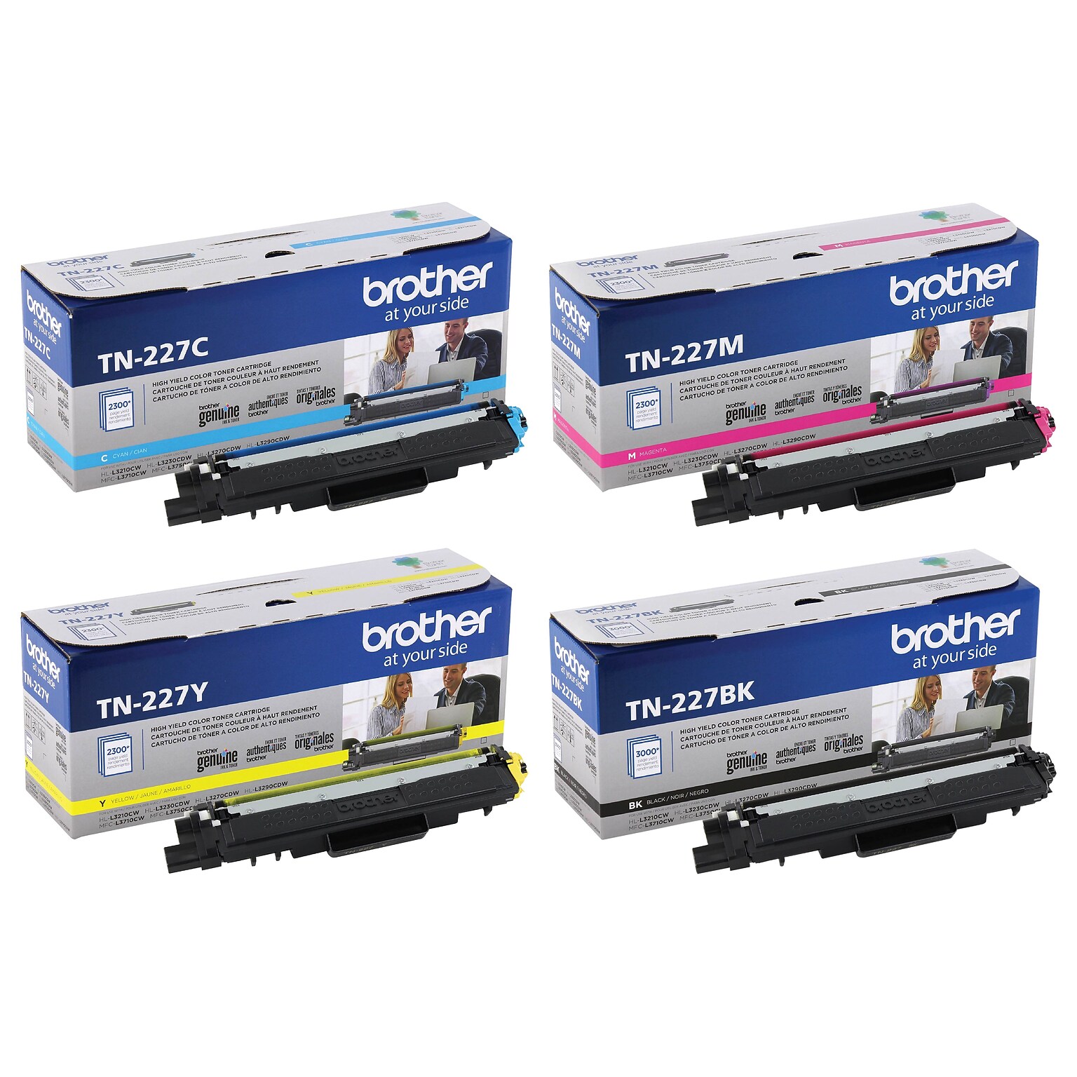 Enjoy a smooth, reliable printing experience with these Brother TN-227 high-yield black, cyan, magenta and yellow toner cartridges.