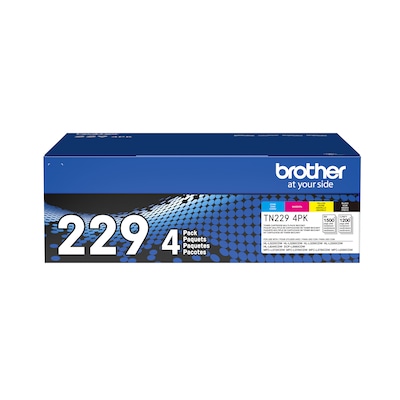 Brother Genuine TN229 4PK Standard Yield Toner Cartridges are engineered by Brother specifically for premium performance and hassle-free replacement in Brother digital color printers. Offering the reassurance of dependable compatibility and yields up to 1500 pages black/ 1200 pages color(1), this convenient multipack is a practical way to save time and cut costs compared to individual toner cartridge purchases. Contains one of each cyan, magenta, yellow, and black toner cartridge for easy, efficient toner replacement. Designed to provide unquestionable fit and steady, reliable performance for worry-free, error-free printing. Use only Brother Genuine printer toner with Brother multi-function and all-in-one digital color printers: HL-L3220CDW, HL-L3280CDW, HL-L3295CDW, HL-L3300CDW, HL-L8245CDW, MFC-L3720CDW, MFC-L3765CDW, MFC-L3780CDW, and MFC-L8395CDW.