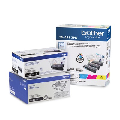 Cover the printing needs of your office with this toner cartridge set. Designed to integrate seamlessly with select Brother machines, this cartridge set offers simple installation and produces high-quality prints. This Brother cartridge set features a black, cyan, magenta, and yellow toner, and one DR431CL Drum unit for crisp, noticeable results and a yield of up to 3,000 pages, making it an ideal candidate for small offices.
