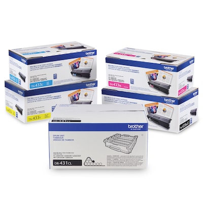 Brother TN433 Black/Cyan/Magenta/Yellow High Yield Toner and DR431CL Drum, 5-Pack