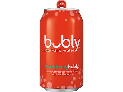 Bubly is unsweetened sparkling water that playfully instigates fun and positivity in everyday life. Bubly sparkling water pairs crisp, sparkling water with natural strawberry flavor to provide a delicious taste with no calories, no sweeteners, all smiles.