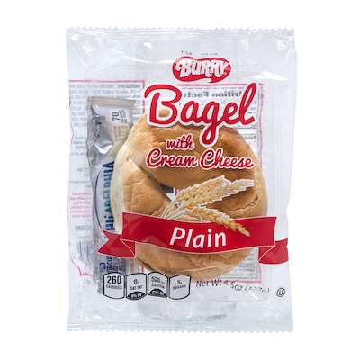 Burry Individually Wrapped Plain Bagel w/ Cream Cheese, 4.6 Oz, 6 Ct