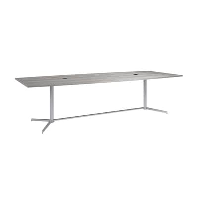 Come together to strategize and shape the course of your company around the Bush Business Furniture 120-inch Office Conference Table. Perfect for teams of 8 to 10 users, this large boardroom table provides an ideal space to present new ideas and collaborate on the day's most pressing matters. Its 1-inch thick surface supports 200 pounds and includes two wire management grommets so team members can power through meetings with laptops, a projector, and any other essential materials. The thermally fused laminate tabletop with continuous edge banding protects against damage that occurs throughout years of regular use. The sturdy metal base includes adjustable levelers for maximum stability on any surface. This large conference room table has been meticulously tested to meet or exceed ANSI/BIFMA standards for safety, durability, and performance and is backed by a Limited Lifetime Warranty.