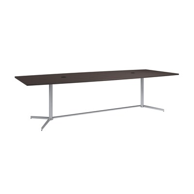 Come together to strategize and shape the course of your company around the Bush Business Furniture 120-inch Office Conference Table. Perfect for teams of 8 to 10 users, this large boardroom table provides an ideal space to present new ideas and collaborate on the day's most pressing matters. Its 1-inch thick surface supports 200 pounds and includes two wire management grommets so team members can power through meetings with laptops, a projector, and any other essential materials. The thermally fused laminate tabletop with continuous edge banding protects against damage that occurs throughout years of regular use. The sturdy metal base includes adjustable levelers for maximum stability on any surface. This large conference room table has been meticulously tested to meet or exceed ANSI/BIFMA standards for safety, durability, and performance and is backed by a Limited Lifetime Warranty.