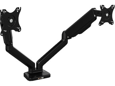 - Adjustable dual monitor arm with USB port features a commercial-quality design that's both ergonomically friendly and built to withstand the rigors of daily use in a professional workspace