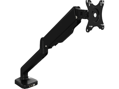 The Bush Business Furniture adjustable monitor arm with USB port features a commercial-quality design that's both ergonomically friendly and built to withstand the rigors of daily use in a professional workspace. Made for a single screen ranging in size from 17" to 32" and up to 20 lbs., this monitor mount can be clamped to any work surface between 0.4" and 3.3" thick or installed in a desktop grommet. It accepts either a flat or curved monitor and is compatible with VESA-MIS-D 75 x 75mm and 100 x 100mm square hole patterns.