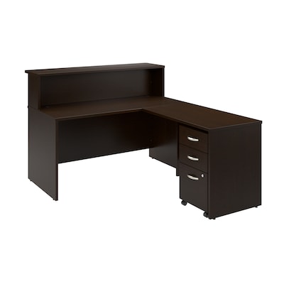 Bush Business Furniture Arrive 60"W L Shaped Reception Desk with Shelf and Mobile File Cabinet, Mocha Cherry (ARV004MR)