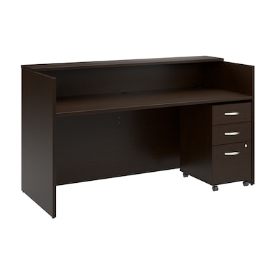 Bush Business Furniture Arrive 72"W Reception Desk with Shelf and Mobile File Cabinet, Mocha Cherry (ARV005MR)
