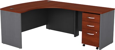 When you're searching for important paperwork, keep your file cabinet close by for quick scanning. The Bush Westfield L-desk and mobile pedestal are assembled separately, making it easy to store the cabinet beneath the desk on either side or station it in another area of the office. This wheeled cabinet provides space for office supplies and features two lockable drawers for security.