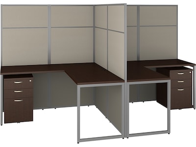 Enjoy a private, productive workspace for two designed with quality and convenience in mind. The Bush Business Furniture Easy Office 60W 2 Person L Shaped Cubicle Desk with Drawers and 66H Panels offers a simple configuration that can be set up quickly, yet is durable enough to withstand the rigors of everyday use in a fast-paced professional environment. Matching non-handed desktops with wire management support up to 200 pounds each and have a thermally fused laminate finish that protects against normal wear and tear. Extended 66H Panels separate the L Desks to maintain privacy and eliminate visual distractions. Two lockable Filing Cabinets accept legal, letter and A4-size documents along with miscellaneous supplies. This commercial office furniture set is tested to meet ANSI/BIFMA quality standards for safety and performance and is backed by a 10 Year Warranty.