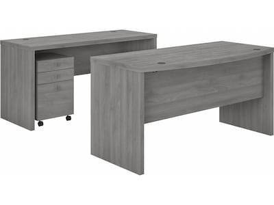 Bush Business Furniture Echo 60"W Bow Front Desk and Credenza with Mobile File Cabinet, Modern Gray (ECH010MG)