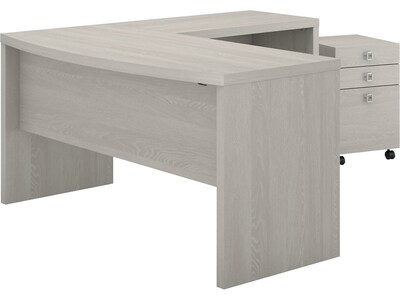 Bush Business Furniture Echo 60"W L Shaped Bow Front Desk with Mobile File Cabinet, Gray Sand (ECH007GS)