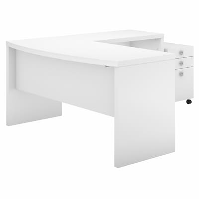 Bush Business Furniture Echo 60"W L Shaped Bow Front Desk with Mobile File Cabinet, Pure White (ECH007PW)