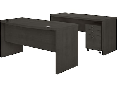 Bush Business Furniture Echo Bow Front Desk and Credenza with Mobile File Cabinet, Charcoal Maple (ECH010CM)