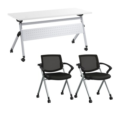 - Bundle includes: 60W Folding Training Table, Mesh Back Folding Chairs with Arms - Set of 2