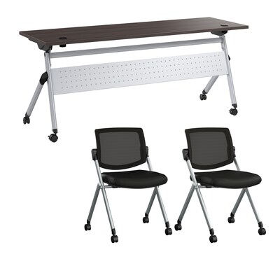 Instantly turn open space into an educational environment with the Bush Business Furniture Envision 72W Folding Training Table with Powered Grommets and 2 Chairs. Table is designed to be set up quickly and can be reconfigured easily. Cushioned seat with black mesh upholstery offers long-lasting comfort with modern style.