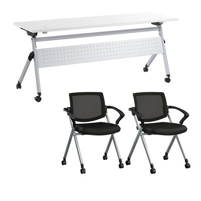 Bush Business Furniture Envision 72"W Foldable Training Room Table with 2 Chairs, White (NVS006WH)