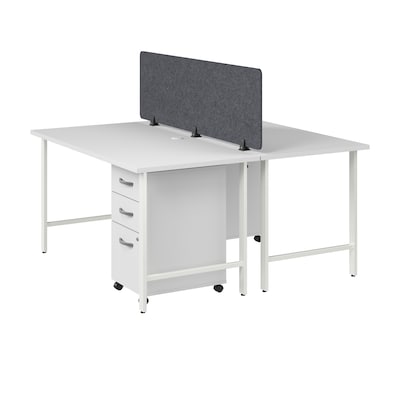 - Bundle Includes: 60-inch Computer Desk (2), 3 Drawer Mobile File Cabinet (2), Desktop Privacy Screen (1), Desktop Power Grommet with AC Outlet and USB-A/USB-C Ports (2)
