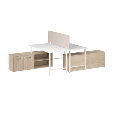 - Bundle Includes: 60-inch Computer Desk (2), Low Storage Cabinet with Doors and Shelves (2), Desktop Privacy Screen (1), Desktop Power Grommet with AC Outlet and USB-A/USB-C Ports (2)