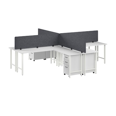 Bush Business Furniture Hustle 30"H x 72"W 4 Person L-Shaped Cubicle Workstation, White (HUS017WHSU)
