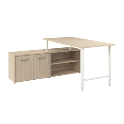 Bush Business Furniture Hustle 60"W Computer Desk and Low Storage Cabinet with Doors and Shelves, Natural Elm (HUS011NE)
