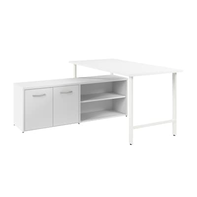 Bush Business Furniture Hustle 60"W Computer Desk and Low Storage Cabinet with Doors and Shelves, White (HUS011WH)
