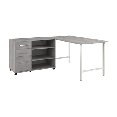 Bush Business Furniture Hustle 60"W Computer Desk and Storage Cabinet with Drawers and Shelves, Platinum Gray (HUS009PG)