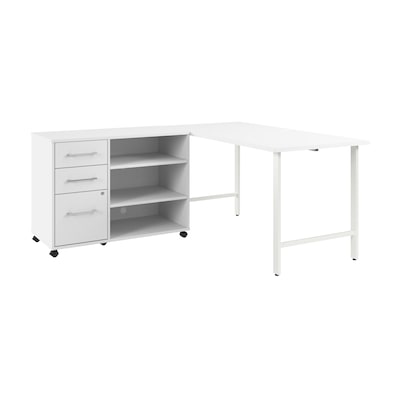 Bush Business Furniture Hustle 60"W Computer Desk and Storage Cabinet with Drawers and Shelves, White (HUS009WH)