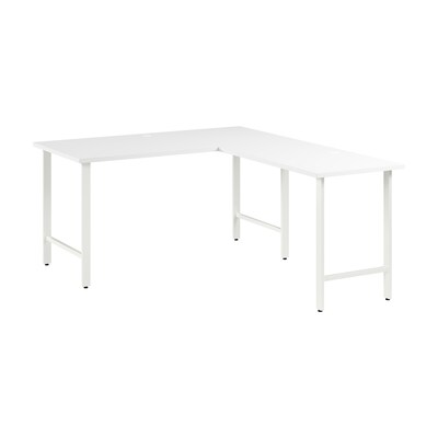 The Bush Business Furniture Hustle 60W x 30D L Shaped Computer Desk with Metal Legs provides the form and function needed to support your entrepreneurial spirit without breaking the bank. An ideal choice for small to medium-size businesses and home offices alike, each modern desk includes a bracket that allows for workstations to connect as your needs evolve and expand. Spread out with materials and equipment on a durable work surface with built-in wire management and a weight capacity of 200 pounds. The L shaped office desk's thermally fused laminate finish fends off scratches, stains, and other cosmetic damage that occurs from daily use in a busy professional environment. This corner desk has been meticulously designed and tested to meet or exceed ANSI/BIFMA standards for safety, durability, and performance and is backed by a 10 Year Warranty. American made with U.S. and imported parts.