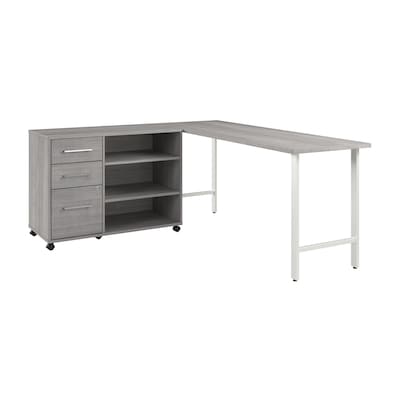 - Modern desk with storage set is backed by the Bush Business Furniture 10 Year Manufacturer's Warranty
