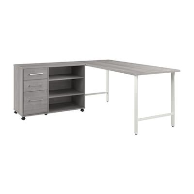 - Modern desk with storage set is backed by the Bush Business Furniture 10 Year Manufacturer's Warranty